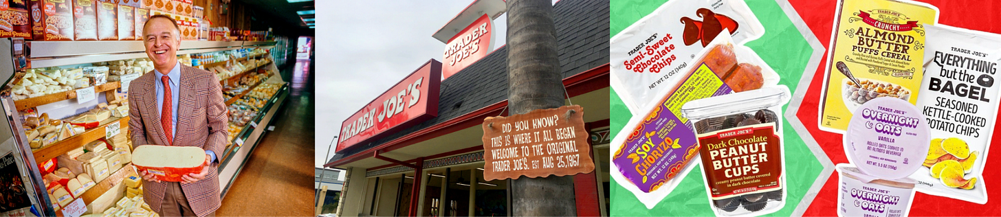 La historia de la empresa empieza con su creador, Joe Coulombe, que supo leer los cambios sociales de su época antes que nadie. A fines de la década del 50, Coulombe manejaba una cadena chica de mercados, estilo 7-Eleven, llamada Pronto Markets. Al tiempo se dio cuenta de que no iba a poder competir a largo plazo contra gigantes como 7-Eleven, que tenían más recursos y mejor logística, y decidió cambiar el concepto.