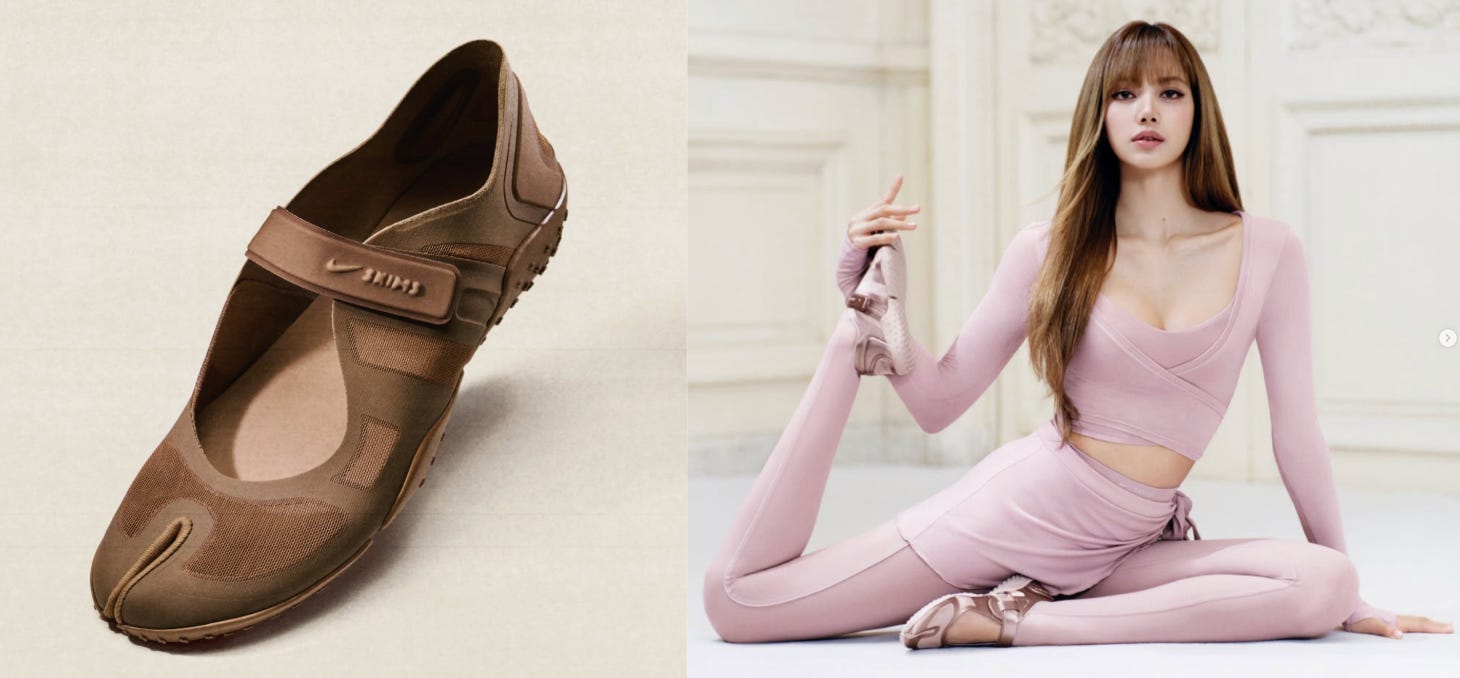 • NikeSKIMS, dos novedades en una semana | Se acuerdan de las zapatillas Nike Air Rift también conocidas como las “pezuñas” que fueron furor en los 2000s? Hace años que Nike viene intentando volver a imponerlas, de hecho hoy pueden encontrar varios modelos en su web, y esta vez lo lograron pero con la ayuda de Skims. Esta semana lanzaron para NikeSKIMS estas zapatillas que son una mezcla entre las Air Rift y una ballerina. Se agotaron en cuestión de horas porque combina lo mejor de los dos mundos y además son el primer modelo de la marca que crearon juntos. Al día siguiente, volvieron a ser virales en redes con la ayuda de Lisa de BLACKPINK (aka la thailandesa de White Lotus 3). La eligieron para protagonizar la colección de esta primavera con esta estética muy ballet que es una evolución de la estética “pilates princess”. Si bien ese mismo día la foto del anuncio tenía millones de likes y ayuda a la marca a posicionarse a nivel global, yo esperaba algo distinto. La estética ballerina ya está muy quemada, Alo lo hizo el año pasado y hoy hasta Lululemon ya tiene ropa con este estilo.