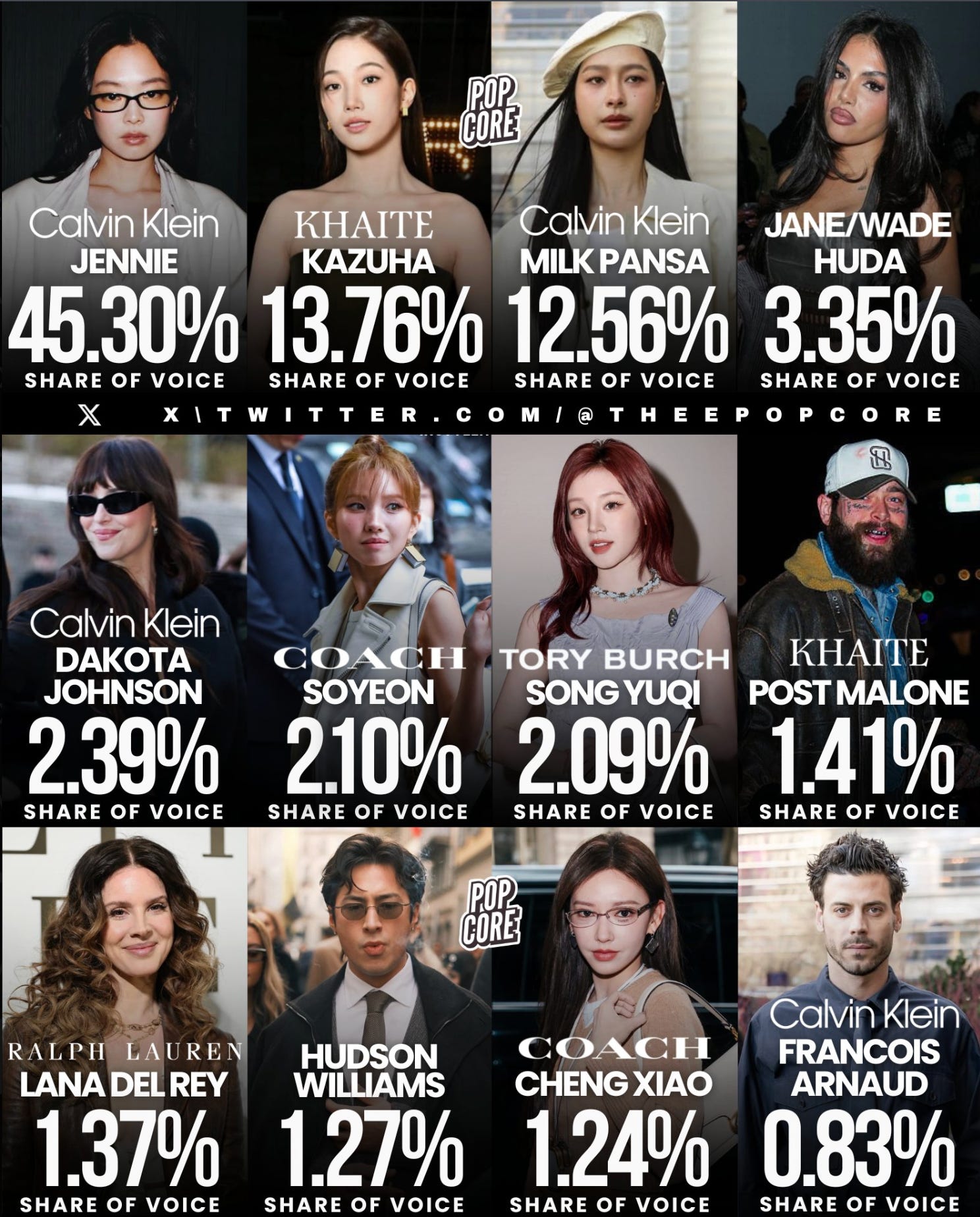 • Los influencers con mayor impacto durante el NYFW | El New York Fashion Week pasó sin pena ni gloria. No hubo ningún highlight que haya repercutido masivamente, ni en las activaciones de marcas ni en los eventos de moda. Quienes sí salieron contentos fueron los influencers, que aprovecharon para cerrar acuerdos con las marcas. Escuchando podcasts previos al NYFW, entendí que este es EL momento para los creadores de contenido. Muchas marcas aparecen para empezar conversaciones y negociar acuerdos con nuevos embajadores. Algunos reconocían que ir a una comida patrocinada a mostrarte y socializar con otros influencers no es el plan más divertido del mundo, pero hay que estar porque es donde te ven y donde conectas con ejecutivos que pueden convertirse en sponsors para el resto del año. A la hora de elegir quién se sienta en el front row, las marcas hacen un cálculo. Analizan el posible ‘media impact’ de cada perfil, es decir, la repercusión que va a generar en redes y medios. No es un proceso rápido ni improvisado, llevan meses cerrando deals con celebridades, con una estrategia clara orientada a maximizar visibilidad en audiencias target, aumentar ventas y reforzar la identidad de marca. ¿Quieren crecer en Asia? Fichan a un ídolo del K-pop. Después del evento toca medir y analizar el Share of Voice (SOV) de cada influencer. Básicamente, se suman todas las métricas, interacciones, impresiones, menciones, likes, artículos, se limpian bots y spam, y se dividen las menciones de cada celebridad entre el total de menciones del NYFW. Esta semana publicaron los resultados, y las que más ruido generaron fueron Jennie de BLACKPINK para Calvin Klein, Kazuha (una cantante japonesa) para KHAITE, y Milk Pansa (actriz y modelo tailandesa) también para Calvin Klein. Les soy honesta, tuve que buscarlas a las tres. Se nota que estoy muy mayor.