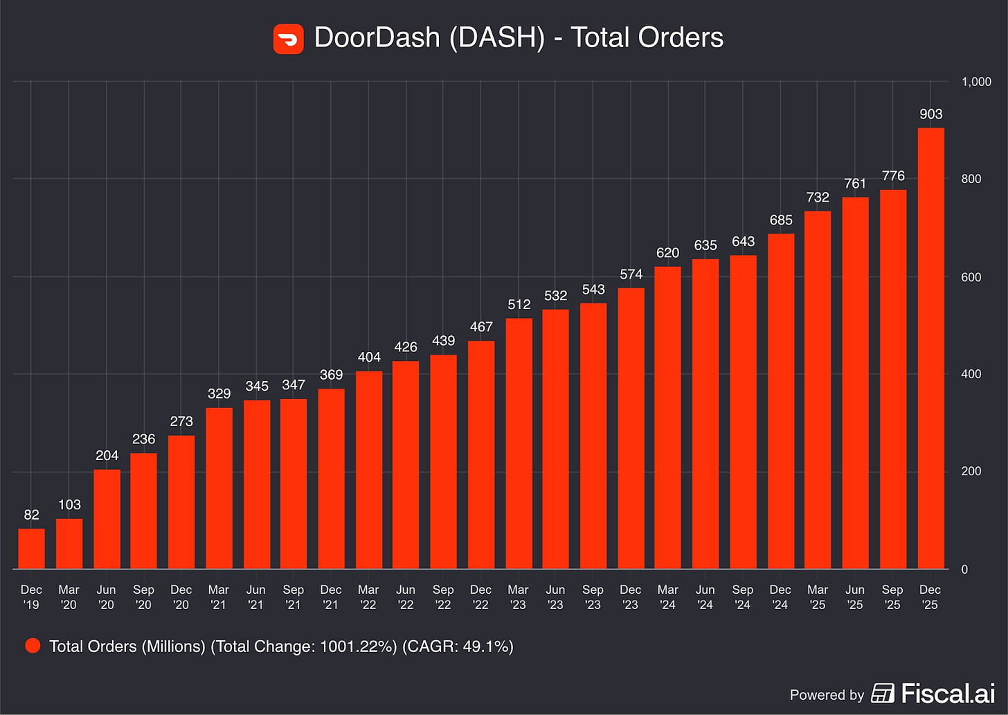 ¿No les pasa que cada vez tienen menos tiempo para cocinar? No se si es el hecho de que estemos todo el día conectados que hace que la jornada laboral se sienta más larga, o un cambio cultural, pero es un hecho que cada vez más gente busca resolver el tema comida sin tener que ir al super y cocinar todo el tiempo. Doordash, la app de delivery más importante de EEUU, tuvo en el último trimestre, el salto en número de órdenes más grande desde que arrancó.