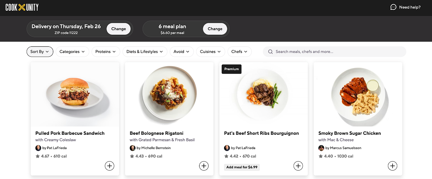 Más allá de su oferta D2C, CookUnity empezó a diversificarse. Ofrecen servicios para empresas como menús customizables para los empleados, servicio de catering, regalos empresariales, y heladeras con comida para llevar. Pero lo que más me sorprendió es que el mes pasado anunciaron una alianza con Airbnb donde los huéspedes tienen acceso a los platos de los chefs de CookUnity a $15 dólares por comida, sin necesidad de suscribirse.