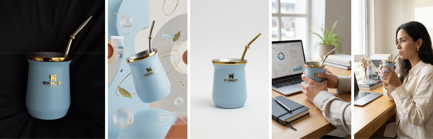 • Google Labs lanzó ‘Photoshoot’ en Pomelli | El otro día todo mi timeline de X estaba inundado de posteos acerca de un nuevo feature dentro de la herramienta Pomelli que podés encontrar en Google Labs. Con ‘Photoshoot’, subís una imagen de tu producto y en segundos te genera una serie de imágenes que parecen hechas por un fotógrafo profesional. Por ahora, la feature está solo disponible en EEUU, Canadá, Australia y Nueva Zelanda, pero si usas una VPN te recomiendo que la pruebes. Para que vean un ejemplo, le subí la primera foto del mate sacada con un iPhone, y en menos de un minuto me hizo las otras cuatro imágenes con el producto en diferentes ángulos y estilos!