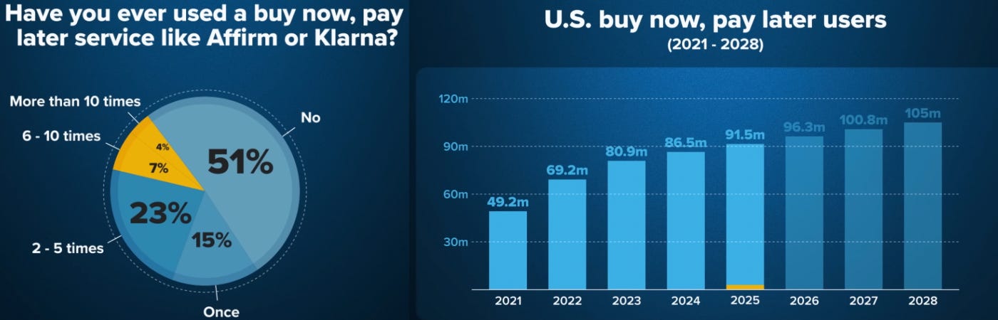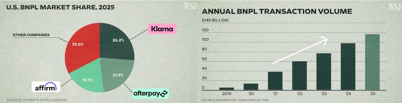 Sabemos que los americanos aman consumir y se endeudan usando sus tarjetas de crédito, pero ahora hay un nuevo fenómeno que hizo que las deudas alcanzaran niveles históricos: Buy Now, Pay Later (BNPL). Un modelo que permite dividir cualquier compra en cuotas sin interés, con un clic, sin pasar por el filtro del banco. No importa si la tarjeta de crédito de tu banco tiene un límite chico o ni siquiera te dan acceso al crédito, ahora estas apps que se ven muy aesthetic y friendly, te dejan comprar lo que vos quieras con un clic, sin intereses (si seguis sus reglas) y sin pasar por el filtro de tu banco. Lo que empezó como una herramienta financiera se convirtió en un estilo de vida, y hoy mueve más de $120 mil millones anuales solo en EEUU.