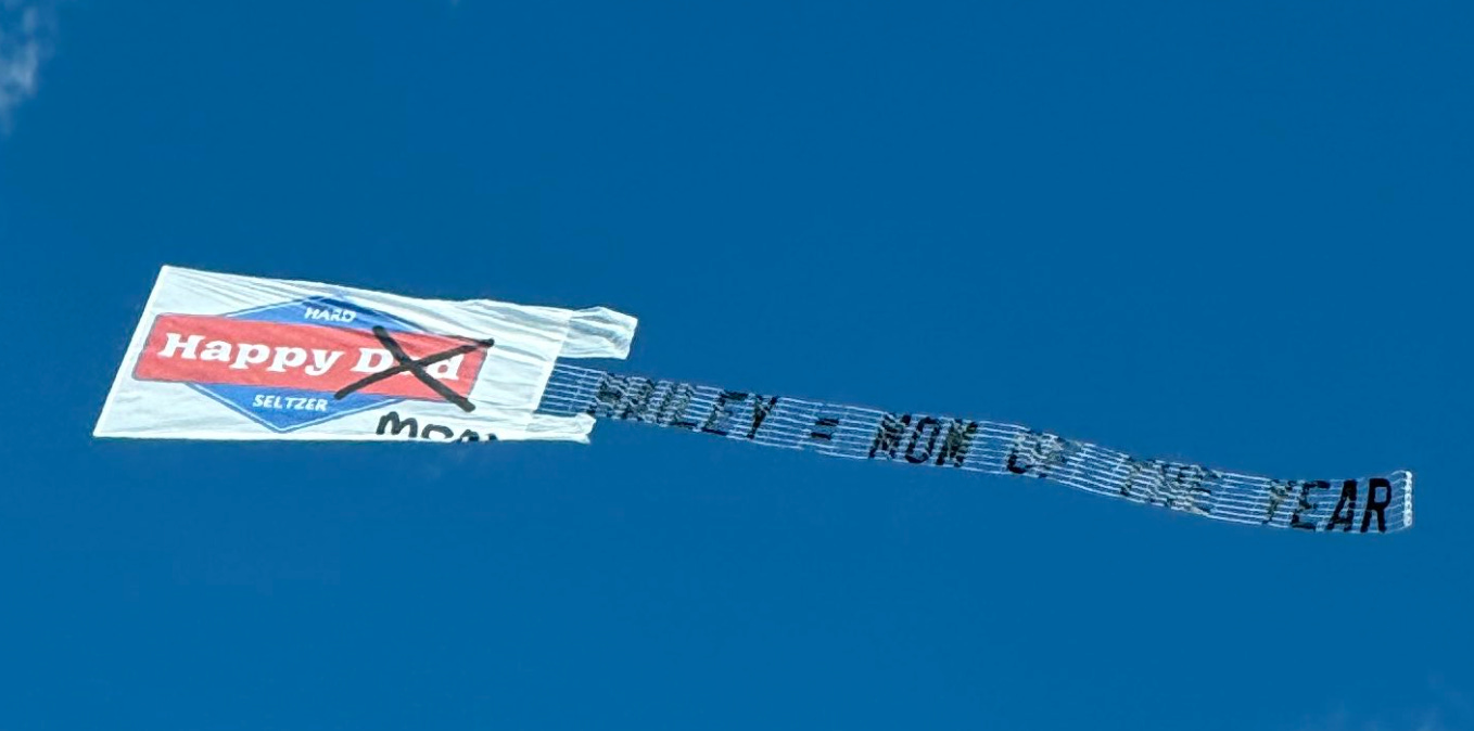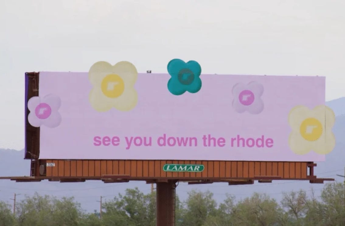 También hicieron una colaboración con 818 Tequila, la marca de Kendall Jenner, sacando un trago con sabor al nuevo lip balm de Rhode. Recomiendo ver este TikTok para inspirarse. Cuando digo que son las estrellas de este Coachella es porque incluso otras marcas los usan para generar contenido: Happy Dad, que hace bebidas alcohólicas estilo White Claw, contrató un sky banner con la frase “Hailey = Mum of the Year”. Hablar de Hailey asegura viralidad, y más en un contexto donde están todas las fans de su marido y de Rhode.