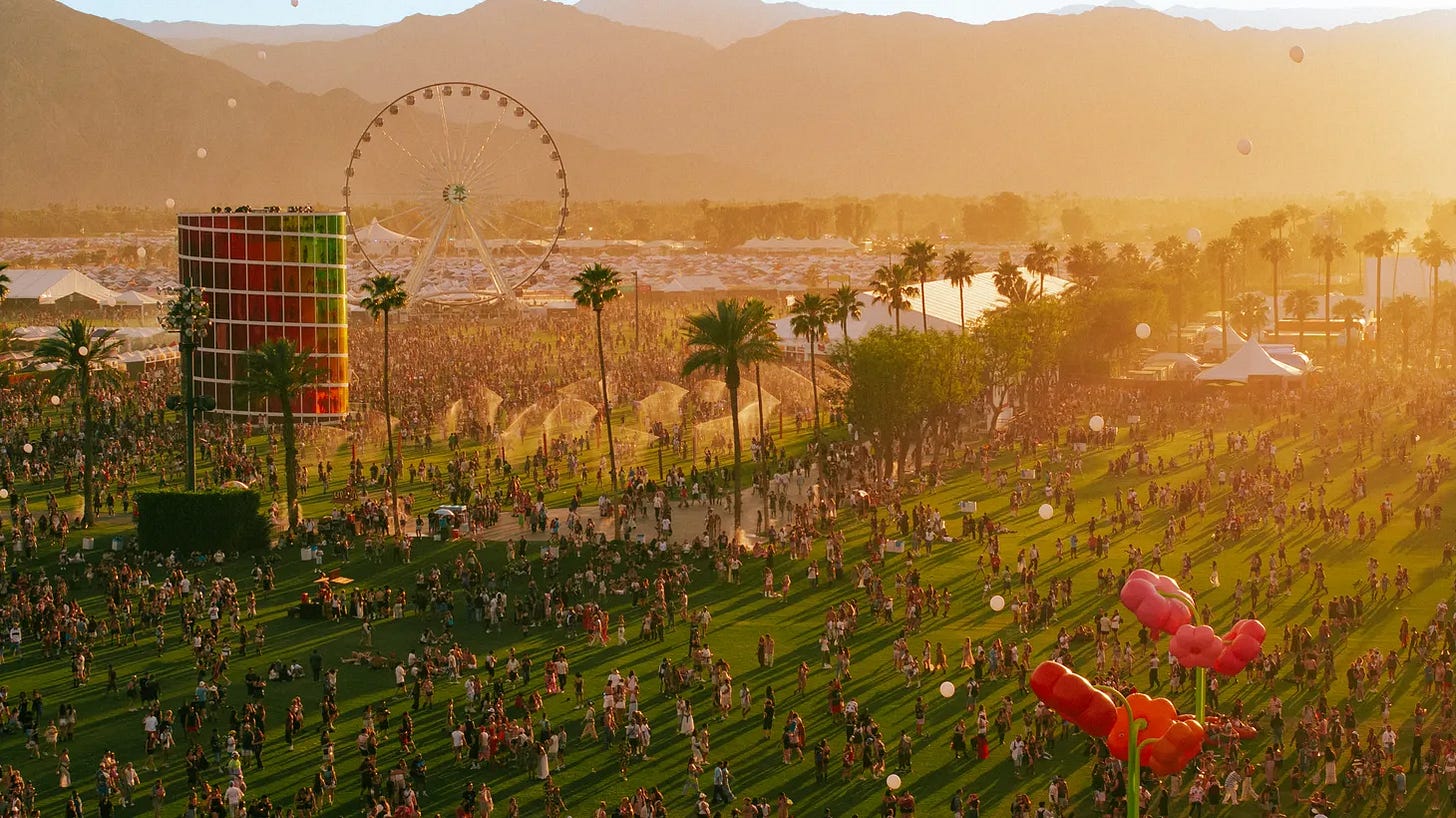 El Super Bowl es el mundial de la publicidad indiscutido. Las marcas invierten gran parte del presupuesto de marketing del año y trabajan duro para convencer a los CFOs de que es una buena estrategia, prometiendo mejores métricas de adquisición y performance por el resto del año. No todas las marcas pueden poner decenas de millones por unos segundos de publicidad, pero todas quieren subirse de alguna manera. Hoy vamos a hablar de un evento que, más allá de la diferencia de precios, le empieza a competir en relevancia cultural. Este fin de semana y el que viene, las marcas no se quieren perder de estar en Coachella. Como conté la semana pasada con April Fool’s Day, me interesa buscar inspiración en las activaciones de marketing, los mejores casos de campañas Out-of-Home, y cómo las marcas más chicas se la rebuscan para no quedarse afuera del festival.